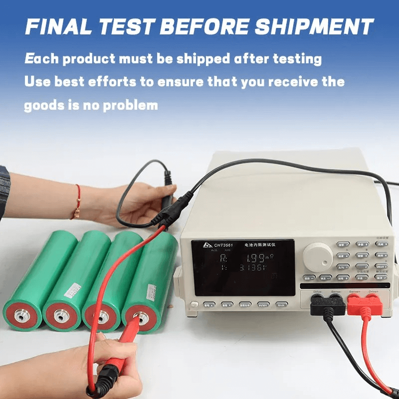 ਅਸੀਂ ਸ਼ਿਪਿੰਗ ਤੋਂ ਪਹਿਲਾਂ ਸਾਰੇ ਬੈਟਰੀ ਵੋਲਟੇਜ ਅਤੇ ਅੰਦਰੂਨੀ ਵਿਰੋਧ ਦੀ ਜਾਂਚ ਕਰਾਂਗੇ.